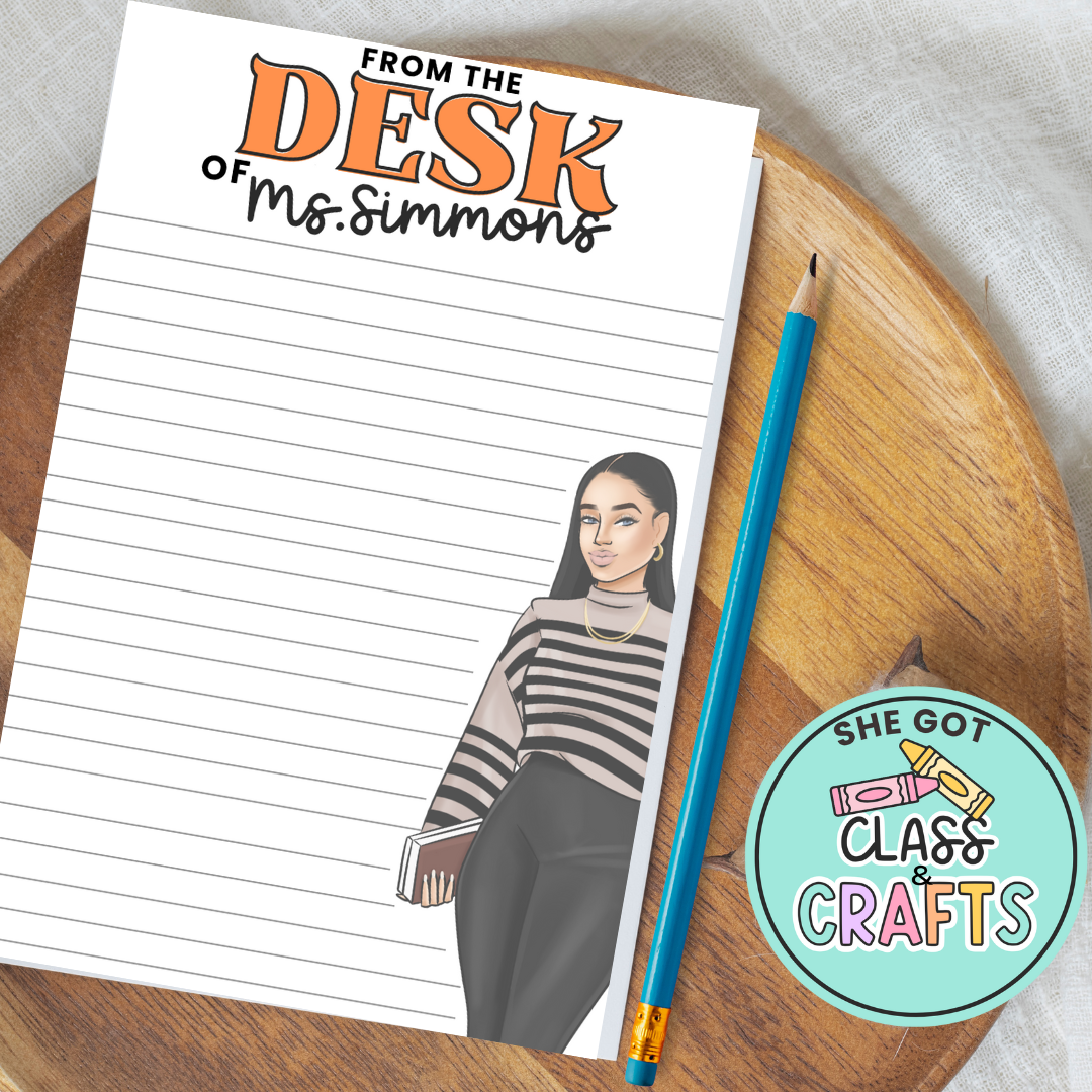 Keep your classroom organized in style with our Personalized Lined Notepad for Educators – the ultimate desk companion for busy teachers, paraprofessionals, and school staff. This sleek design features bold writing lines, your custom character illustration, and your name for a professional touch.